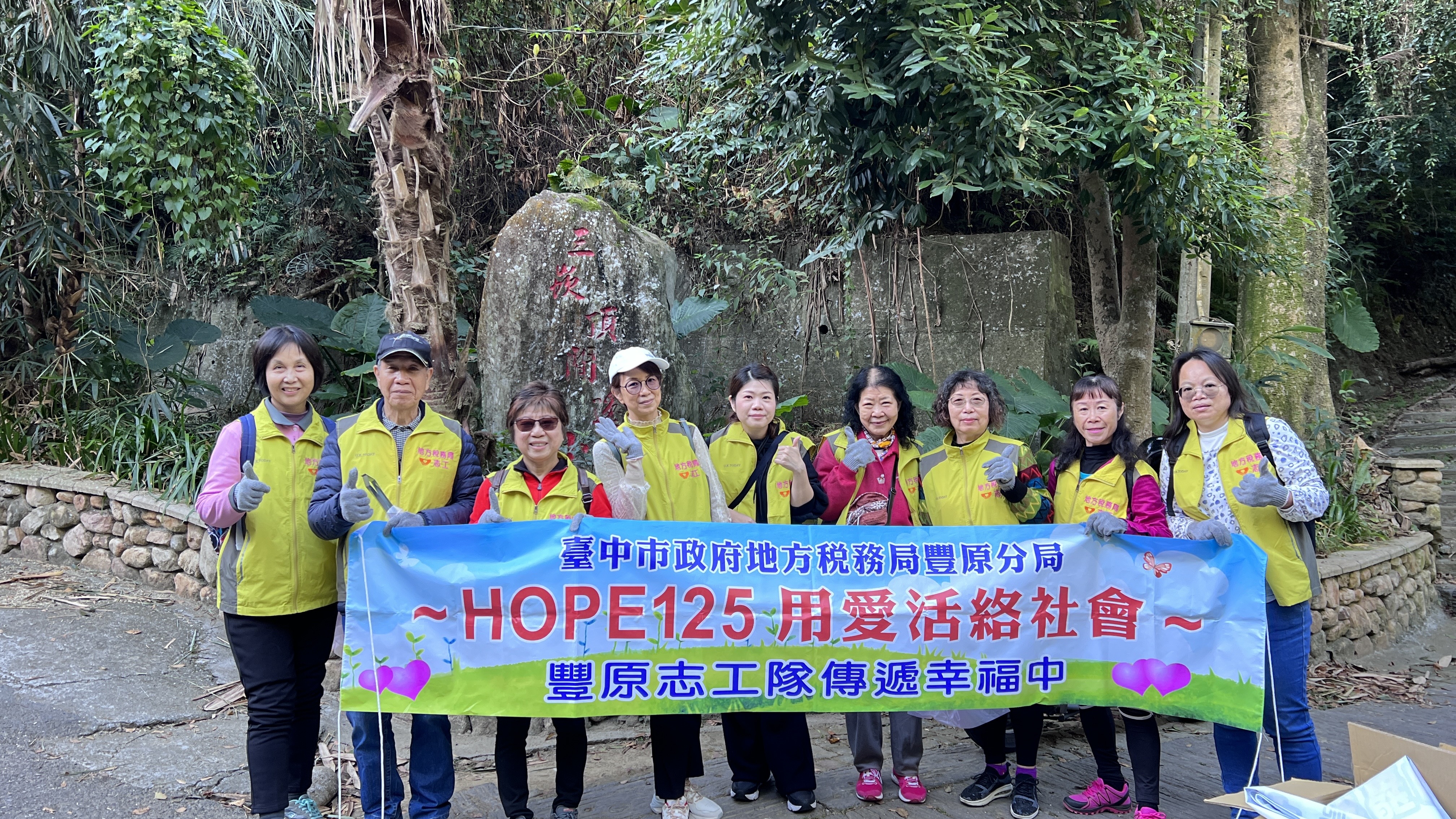112年12月24日於豐原區三崁頂健康步道舉辦「愛環保淨山活動」,豐原志工隊以實際行動展現愛護山林的理念,一邊淨山一邊健行,做公益還能讓自己的身體更健康!
