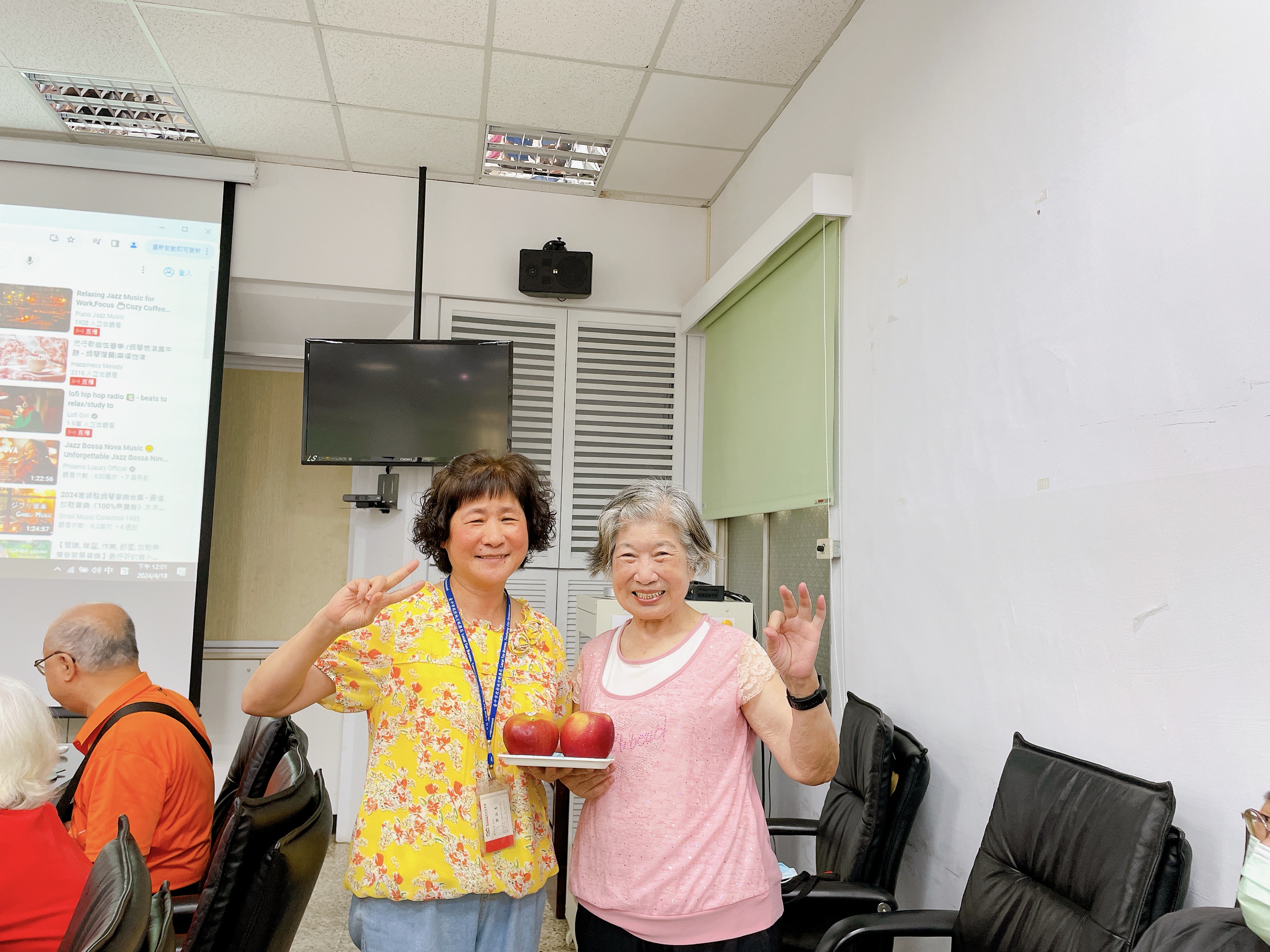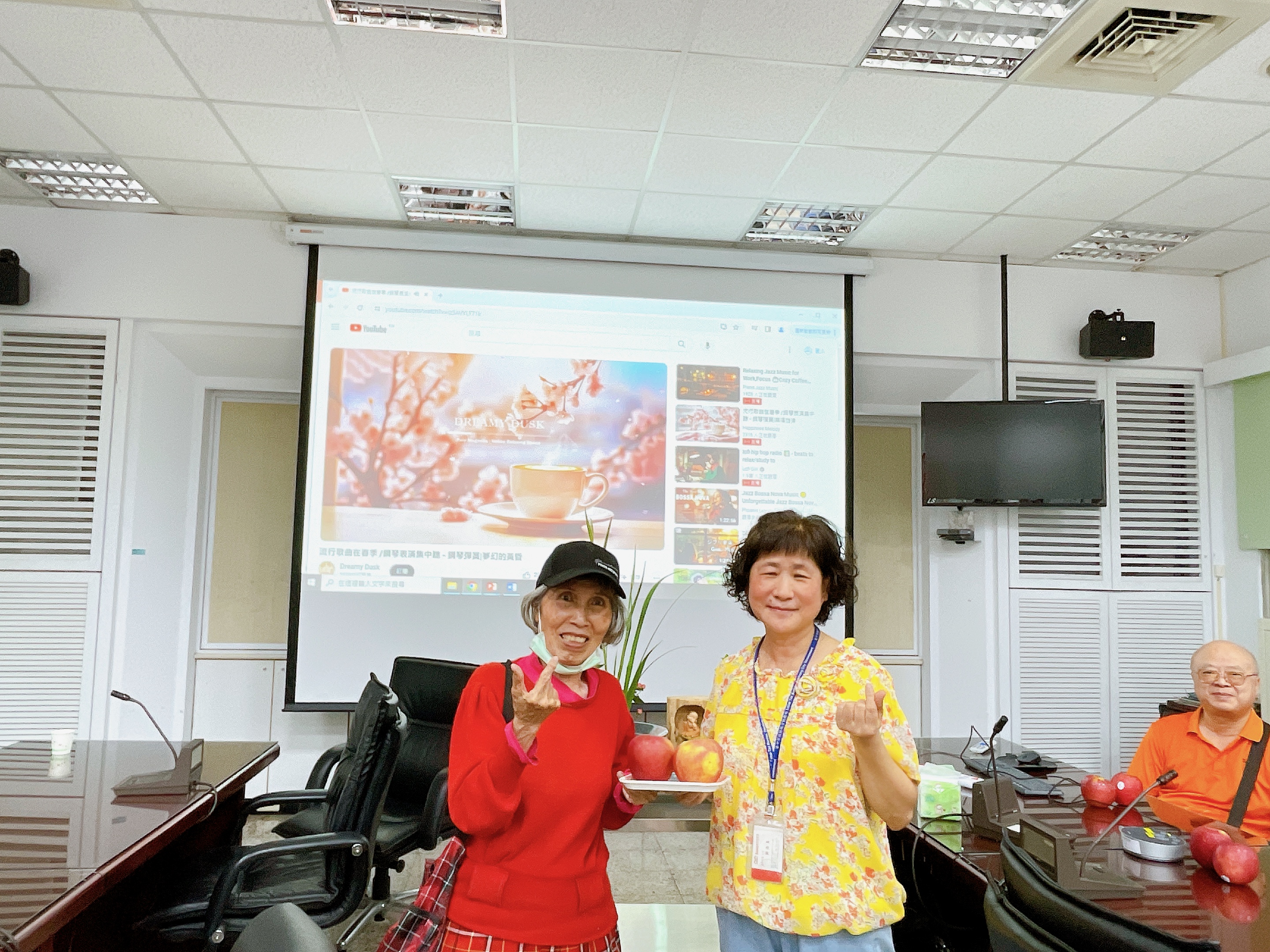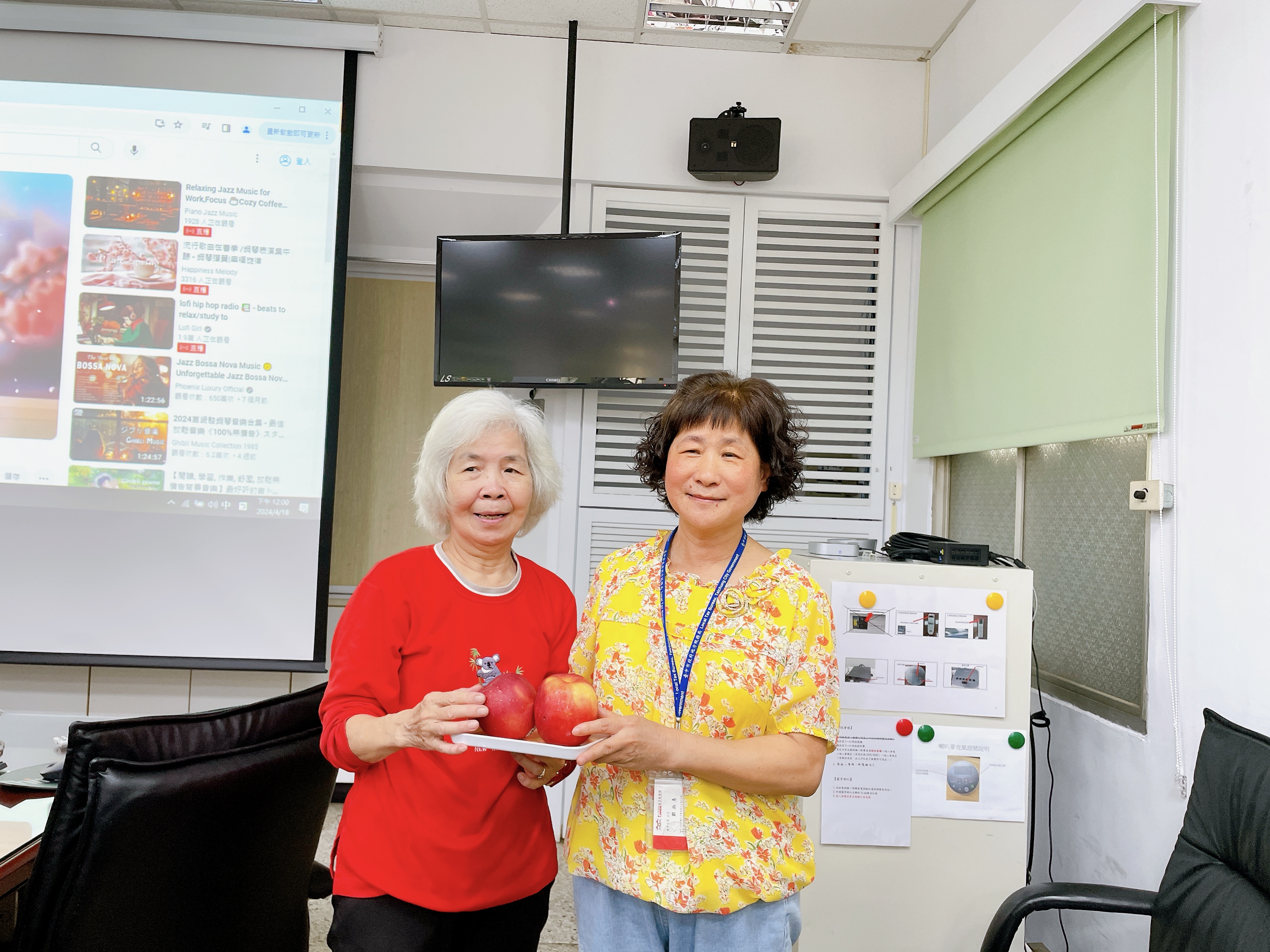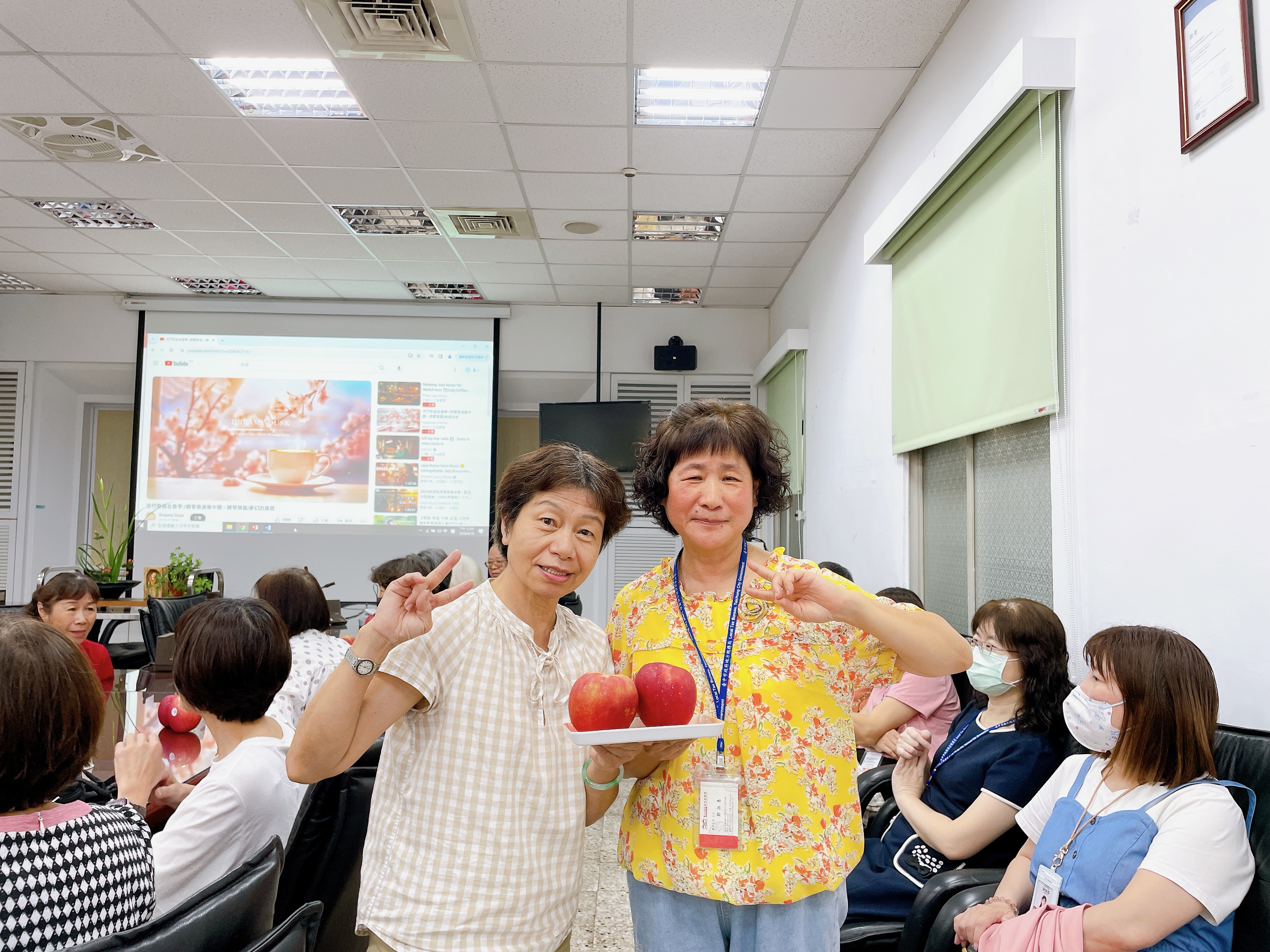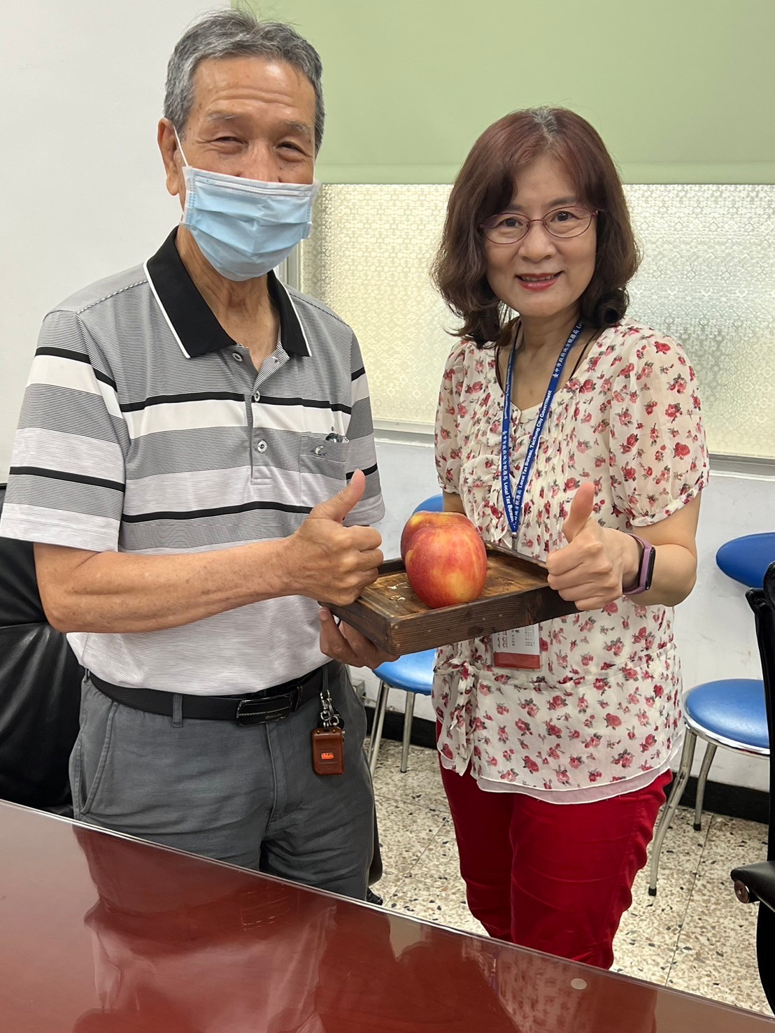 由主任及稽核致贈每人2顆蘋果,祝福志工夥伴們平平安安、身體健康,將志願服務的精神延續、發光發熱。