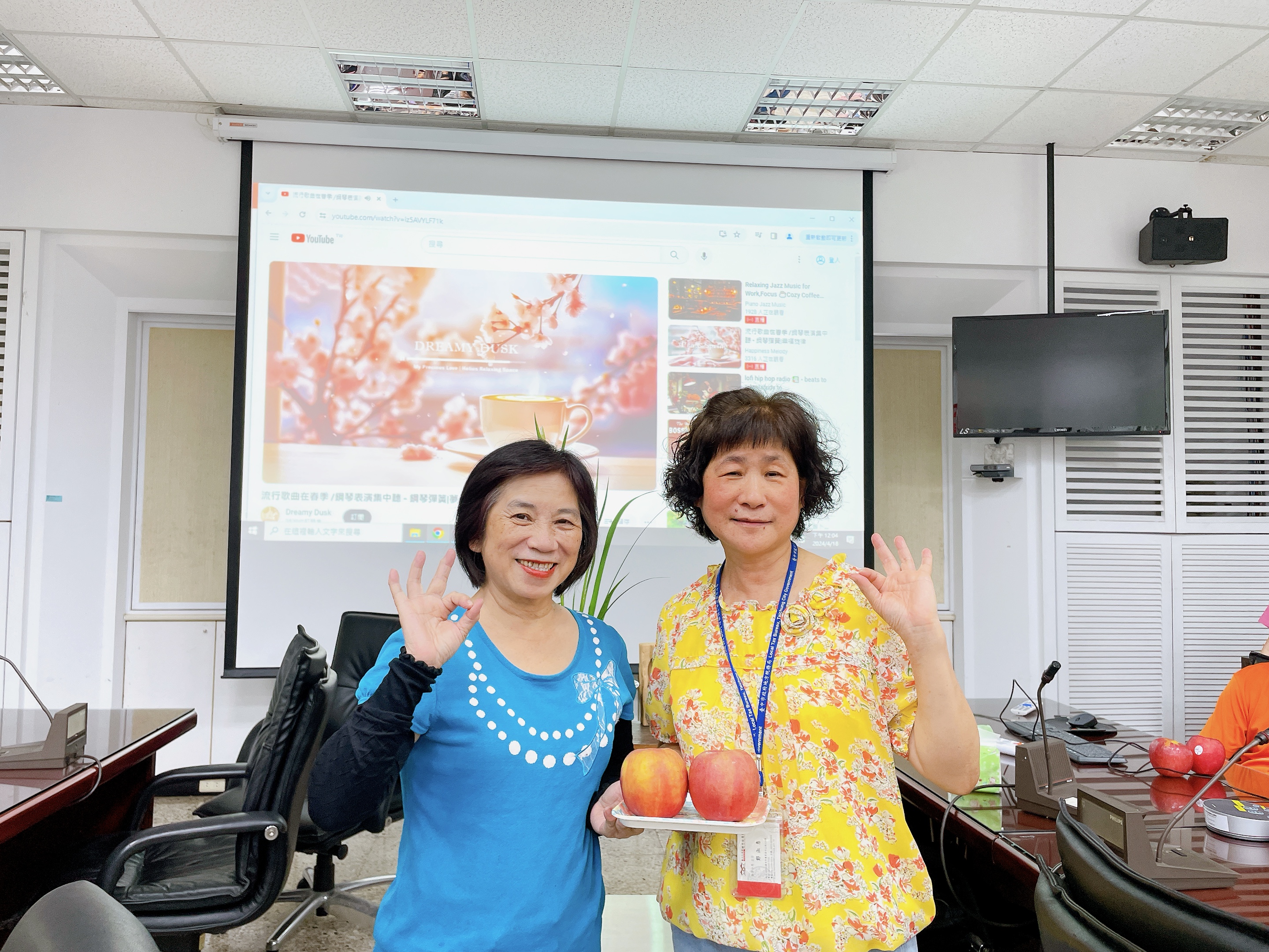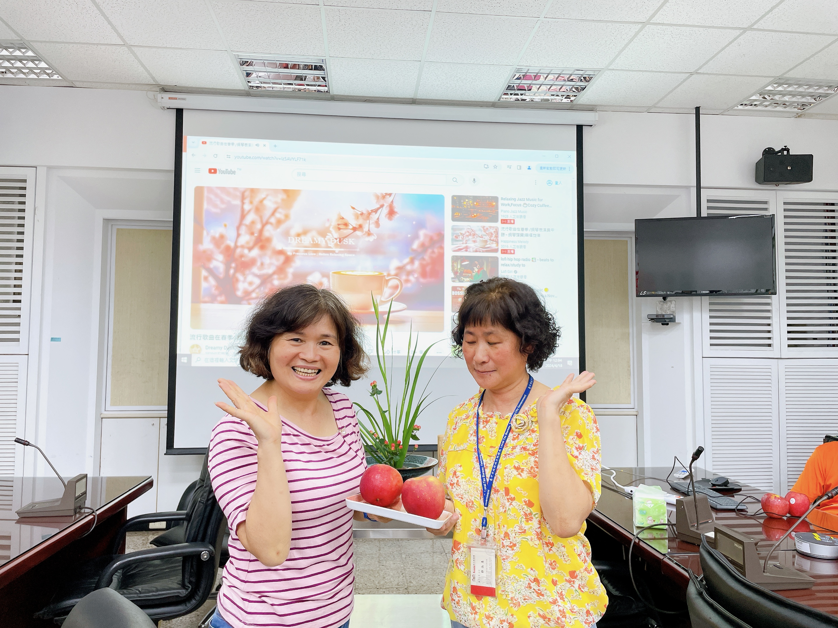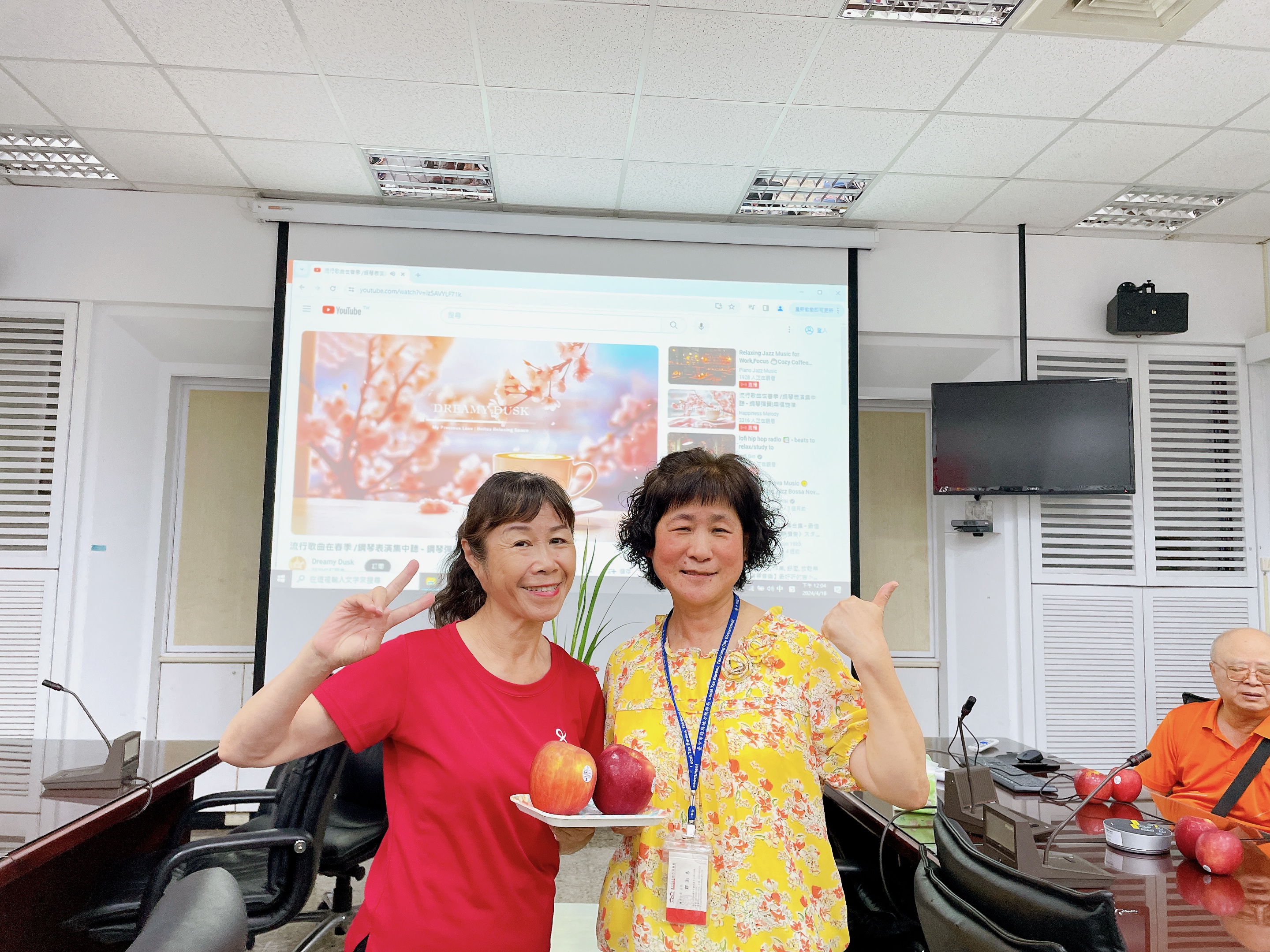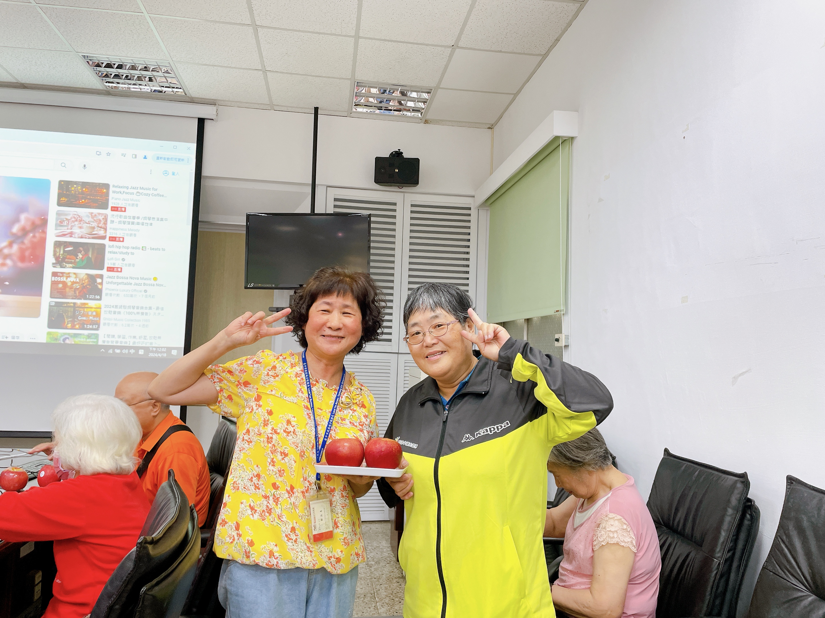 由主任及稽核致贈每人2顆蘋果,祝福志工夥伴們平平安安、身體健康,將志願服務的精神延續、發光發熱。