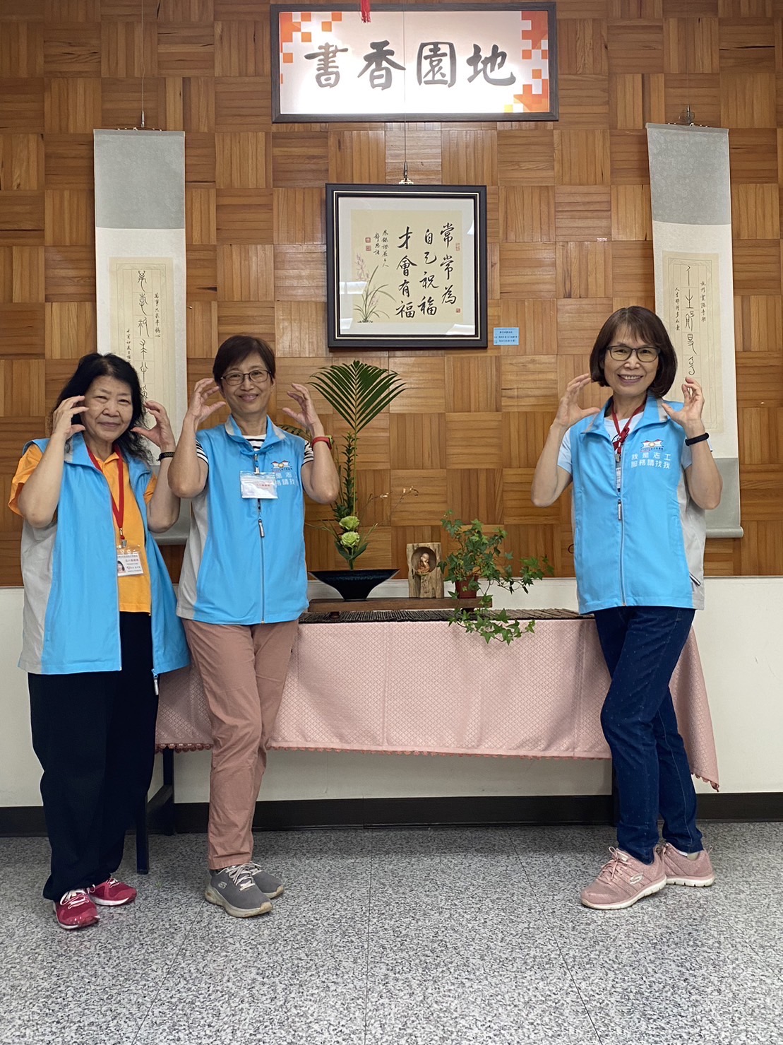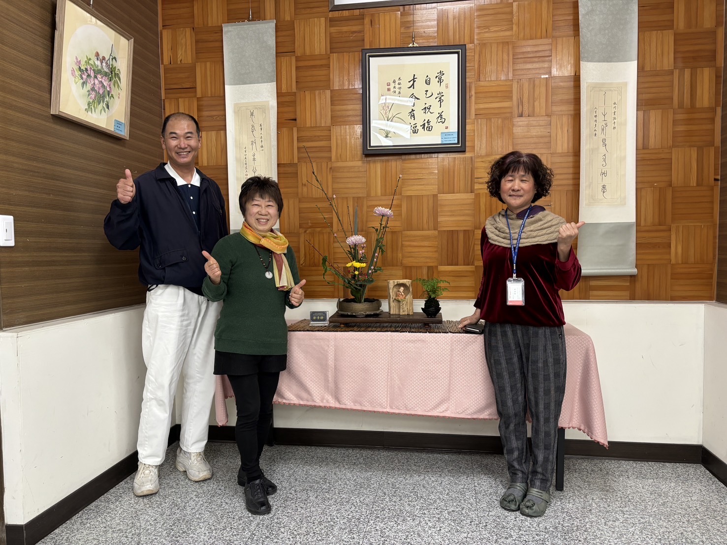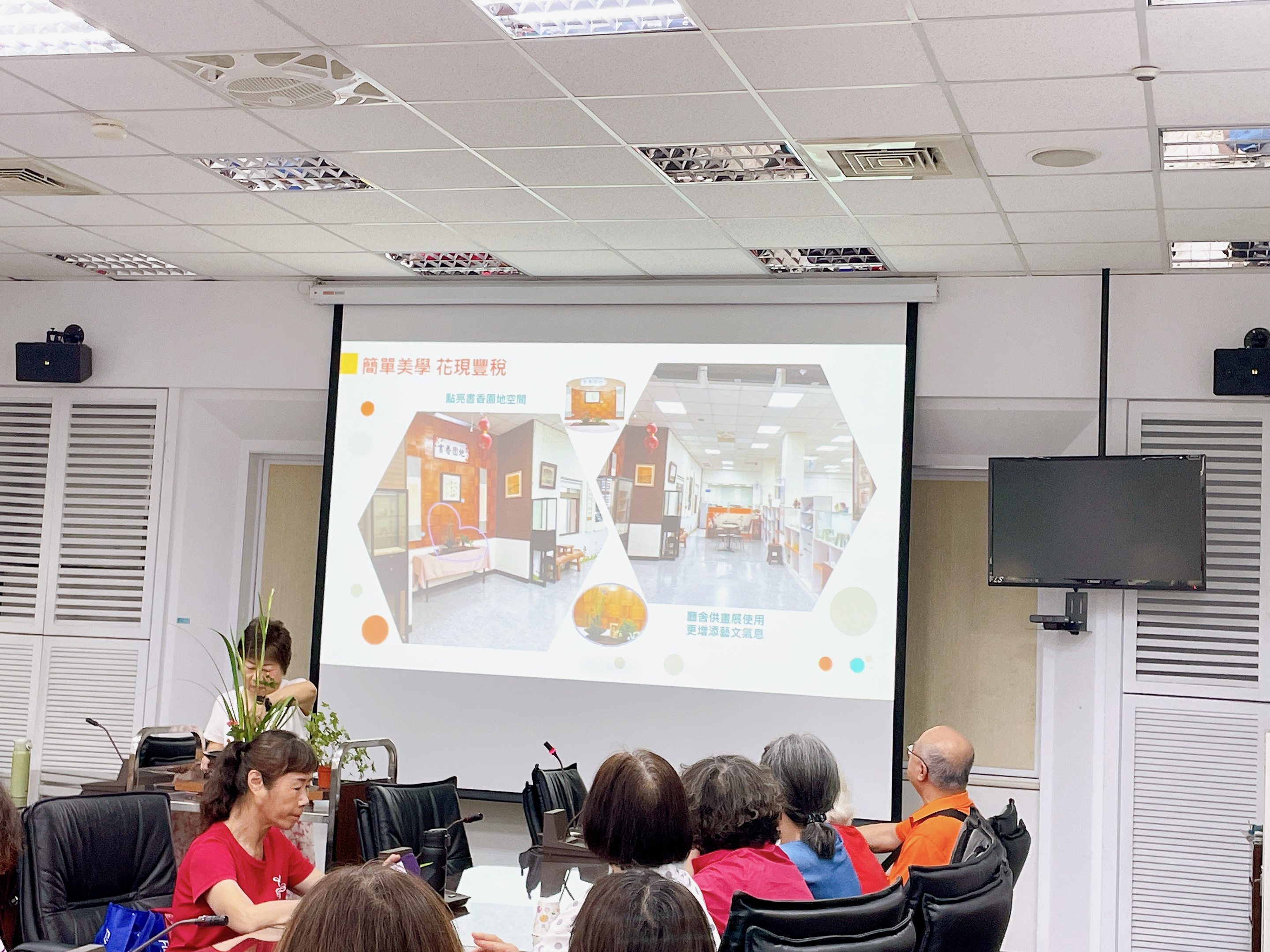透過志工分享創作花藝的心得與啟發,花藝之美可以改變居家氛圍,紓解身心壓力,在「拈花惹草」過程中帶來心情沉澱,有助於心靈療癒,增加自我意識及同理心,進而提升服務品質。