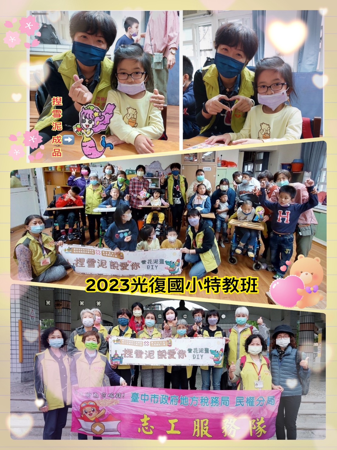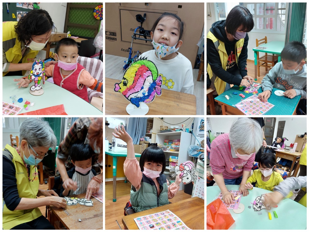 112年3月31日配合兒童節活動,與國小特教班合作,讓志工伙伴從旁協助及陪伴弱勢身障孩子一同完成作品,藉由改變服務模式,加強社區連結,發揮團隊精神!