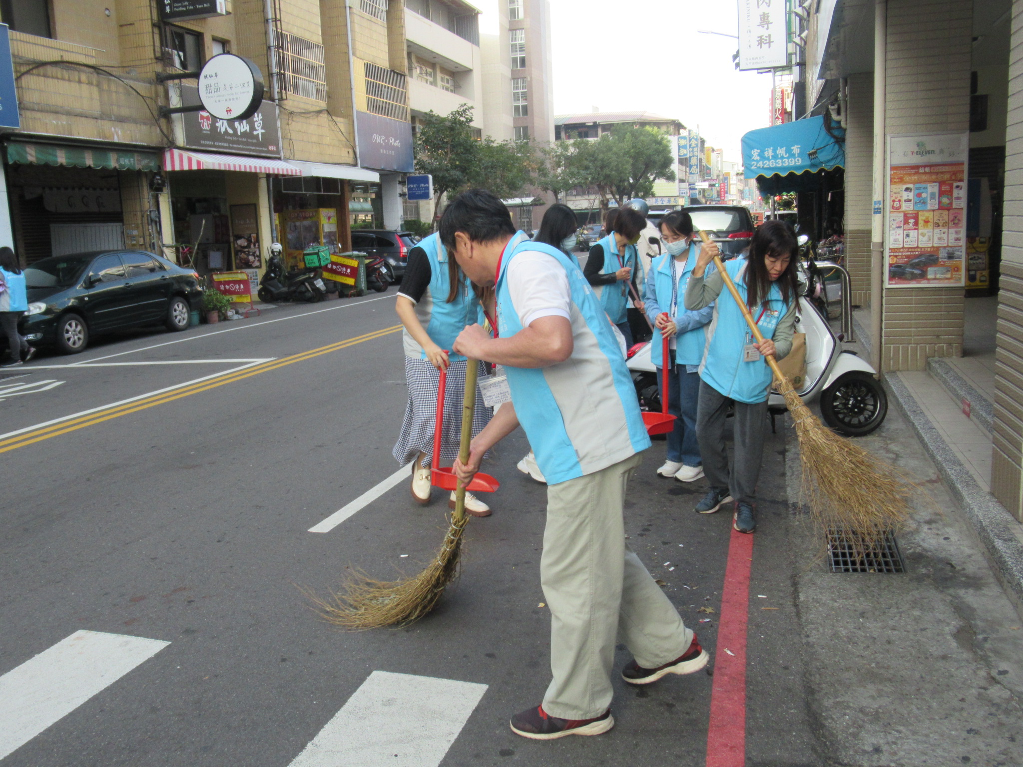 志工們撿起地上的小垃圾(袋子、菸蒂等),維護鄰里街道的環境,還給街道乾淨的面容。