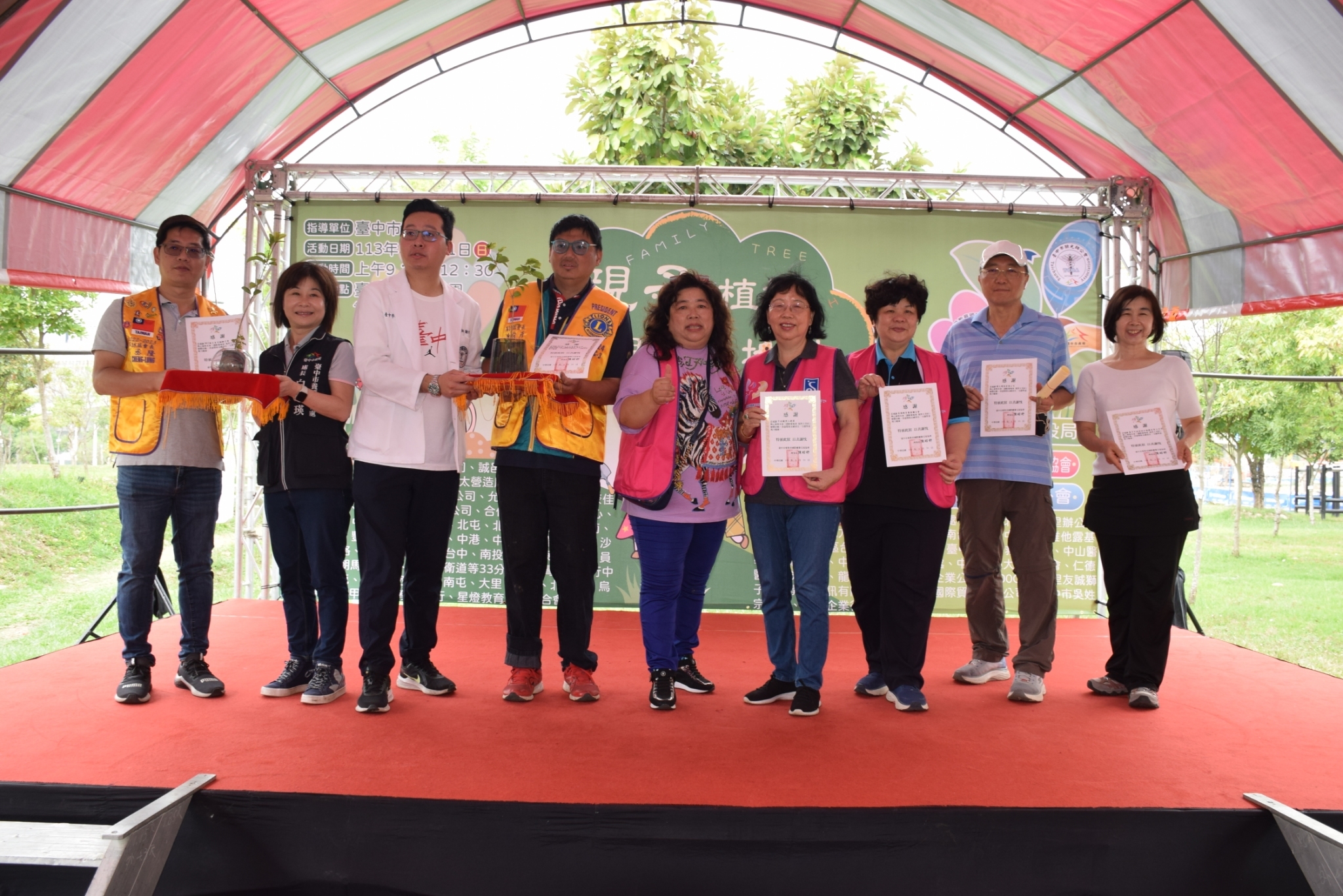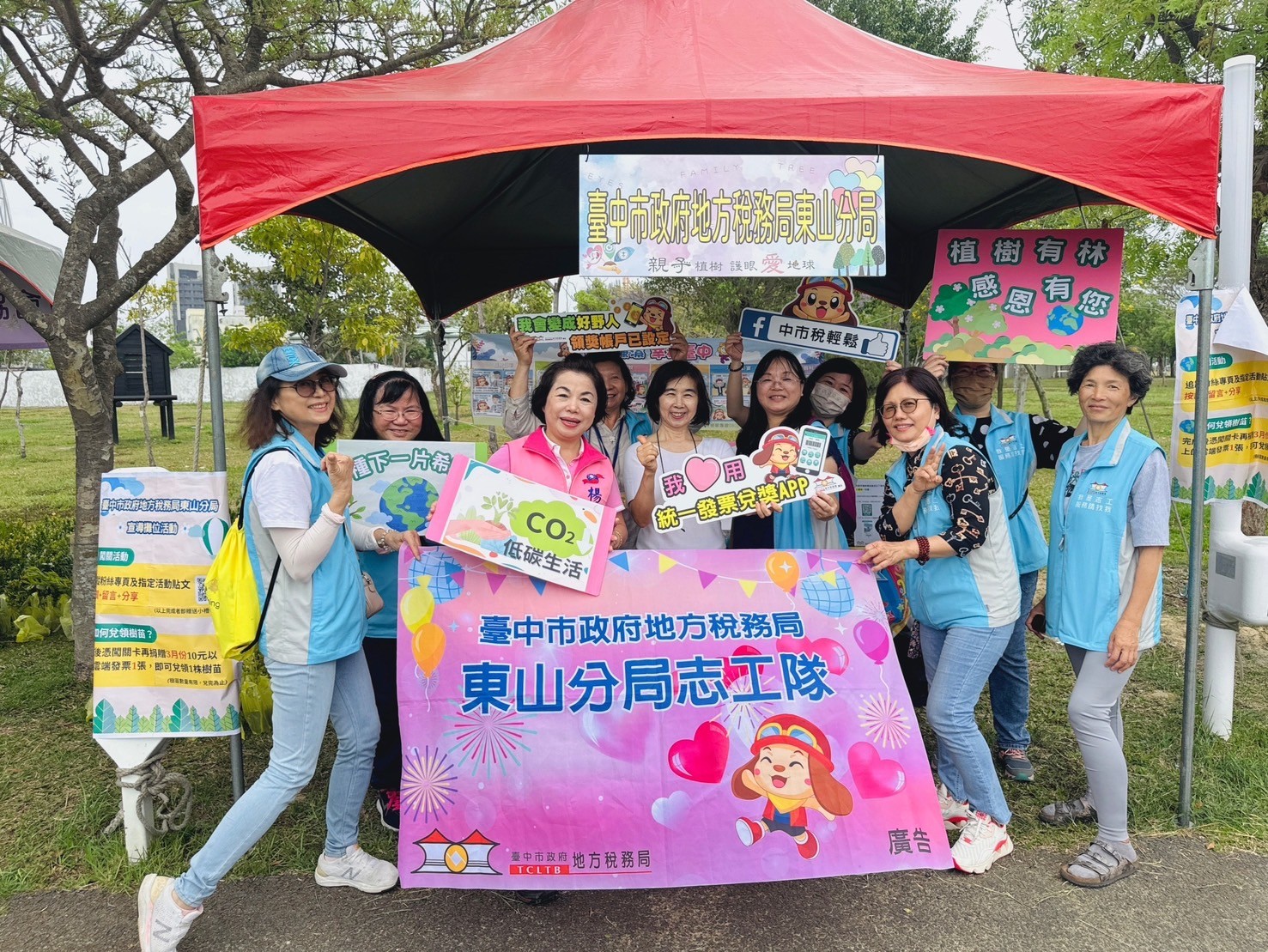 親子植樹活動,超過千人共襄盛舉,為募集發票關懷南台中家扶中心弱勢孩童,志工將活動所準備700株樹苗裝袋,現場積極鼓勵並協助民眾捐贈雲端發票將樹苗帶回家種植,擴大綠色生活結合愛心公益。