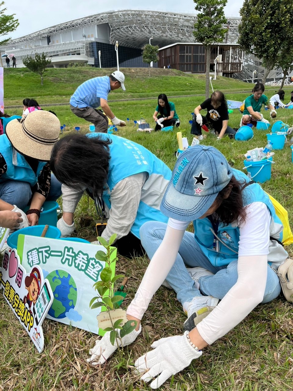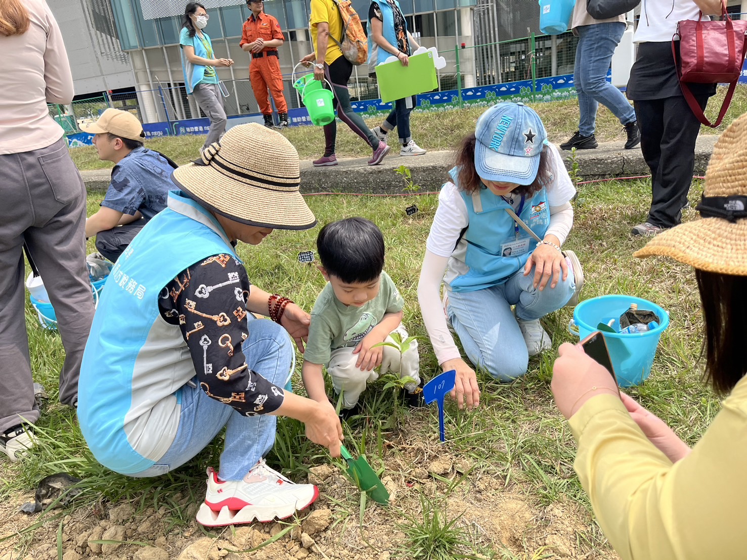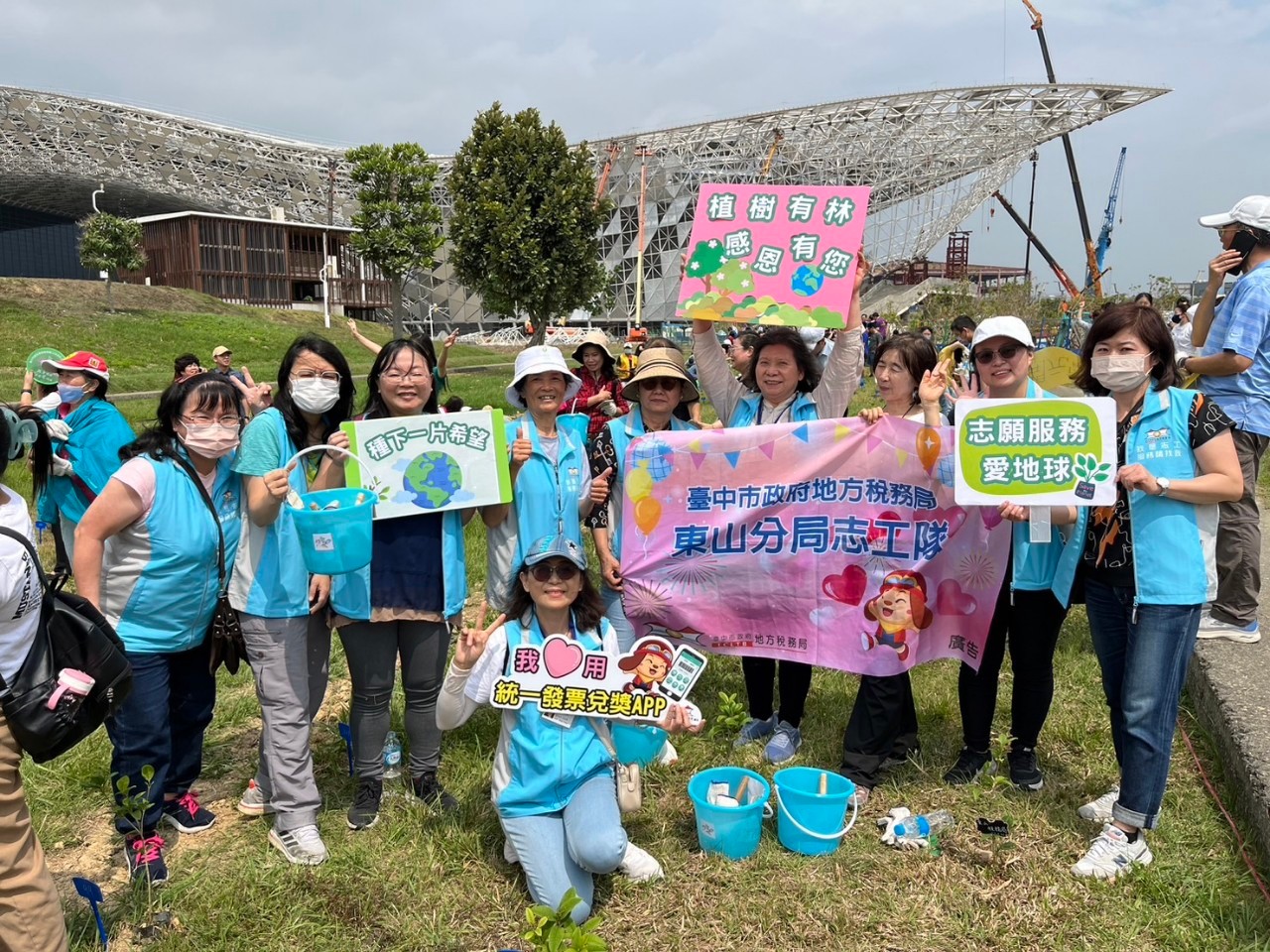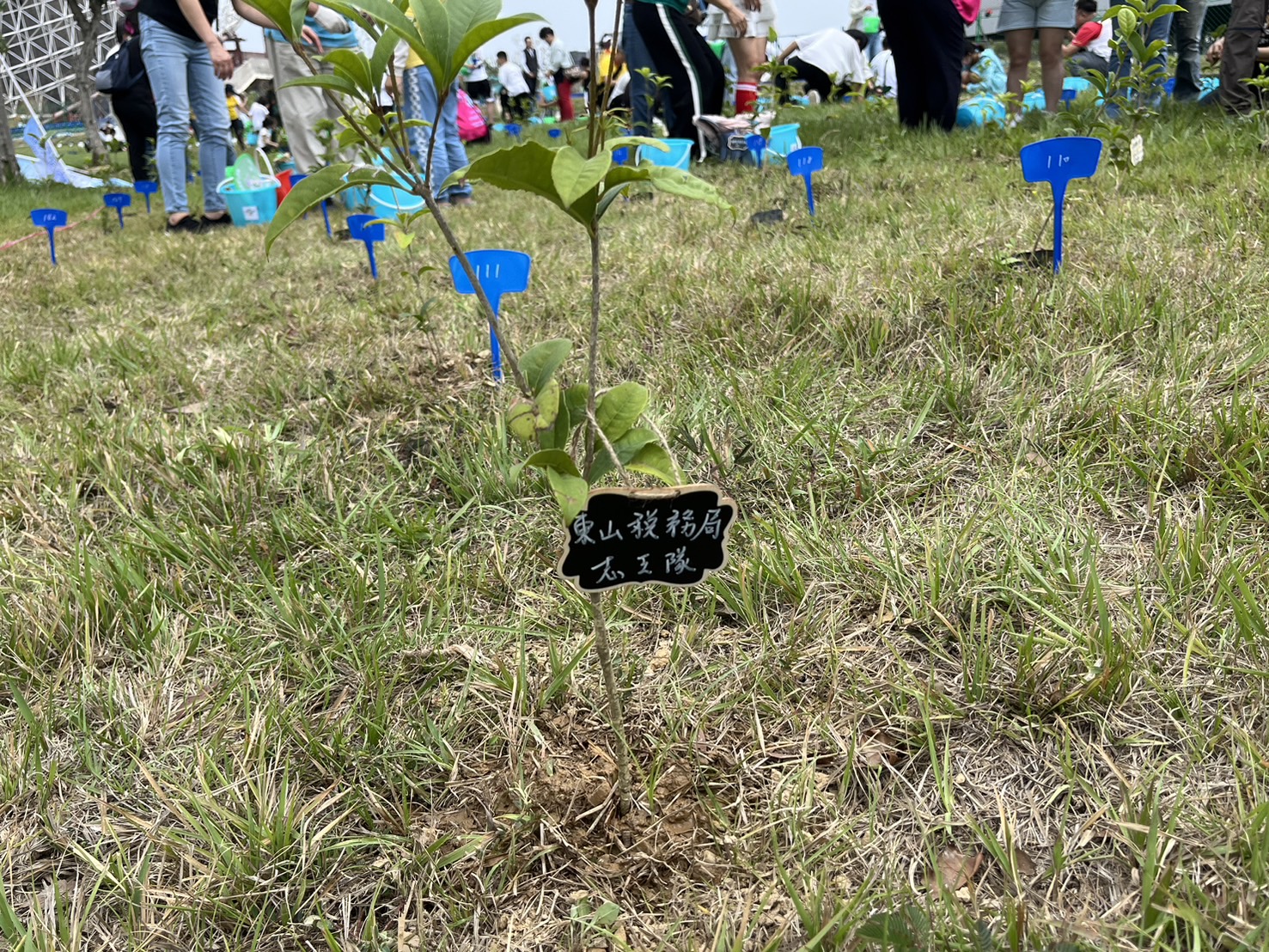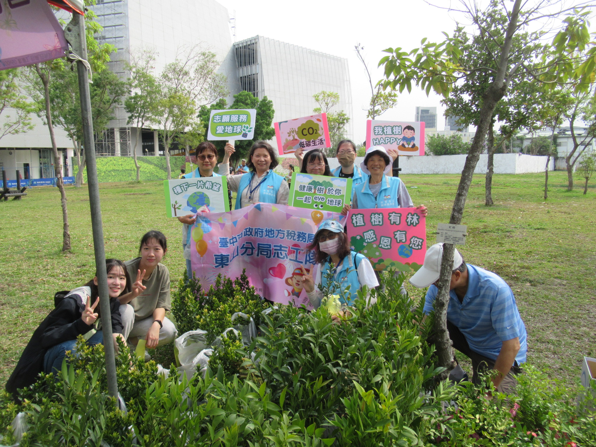 另志工夥伴們代表東山分局志工隊,將桂花樹苗種植在中央公園特定區域,宣揚友善地球,志工攜手同行及推廣綠美化觀念。