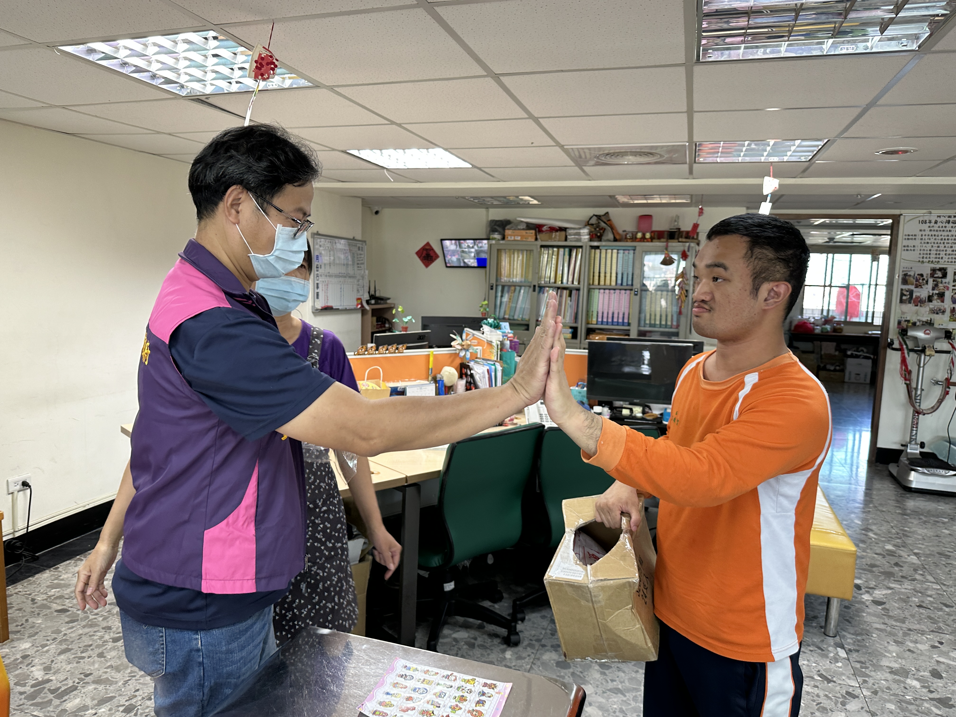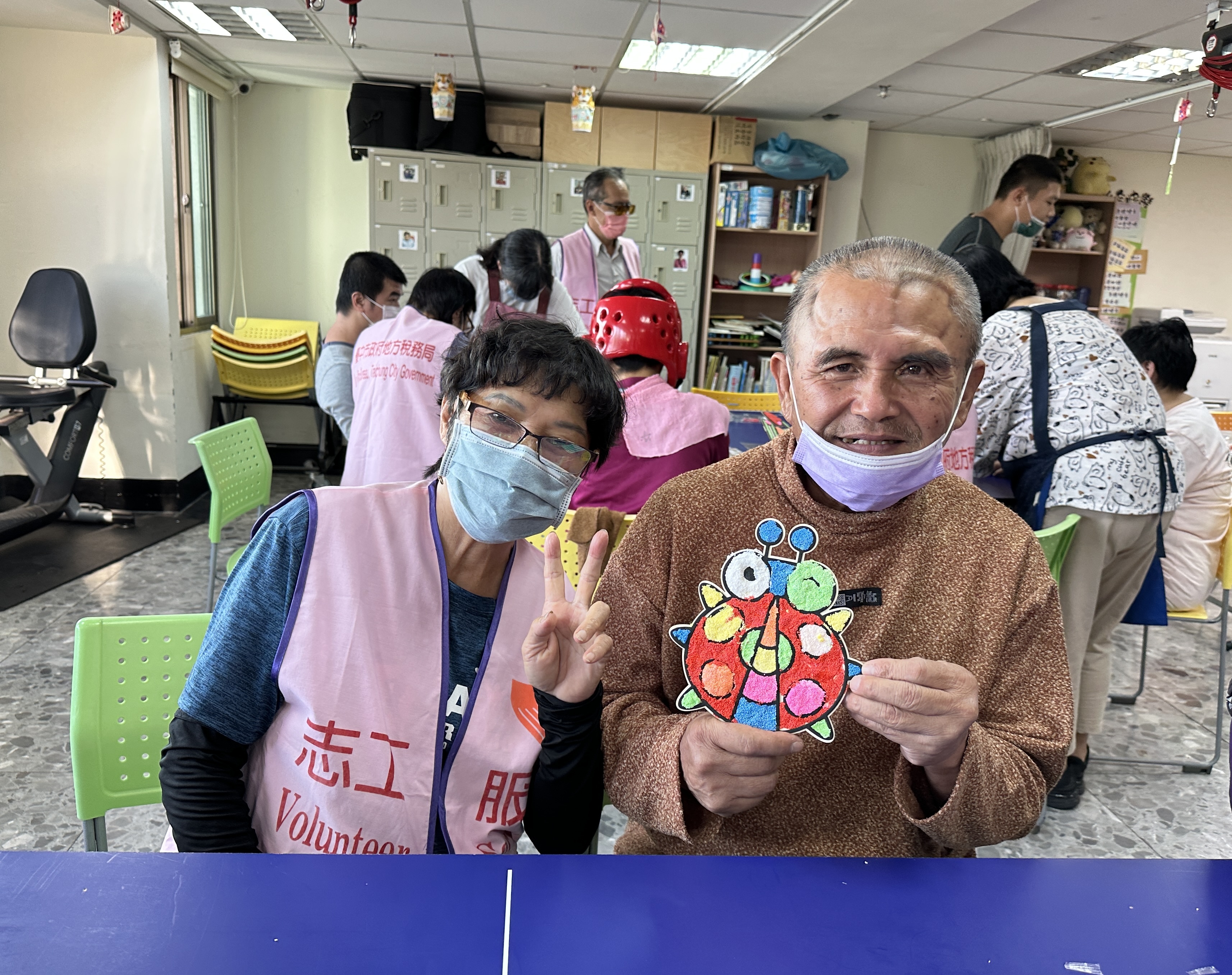由主任親自率領東勢分局志工隊與同心圓長照機構的大朋友們一起動手做雪花泥板作品!順練手部大小肌肉,繽紛的作品療癒身心~