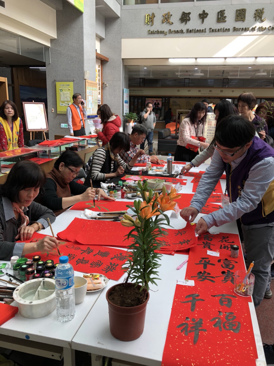 (臺中訊)臺中市政府地方稅務局表示該局文心分局為了增添年節氛圍並結合「2018臺中市花卉博覽會」議題,特別於1月24日舉行「旺旺報喜花現新春 春聯揮毫愛心無限」租稅宣導活動,讓市民朋友一同共襄盛舉。