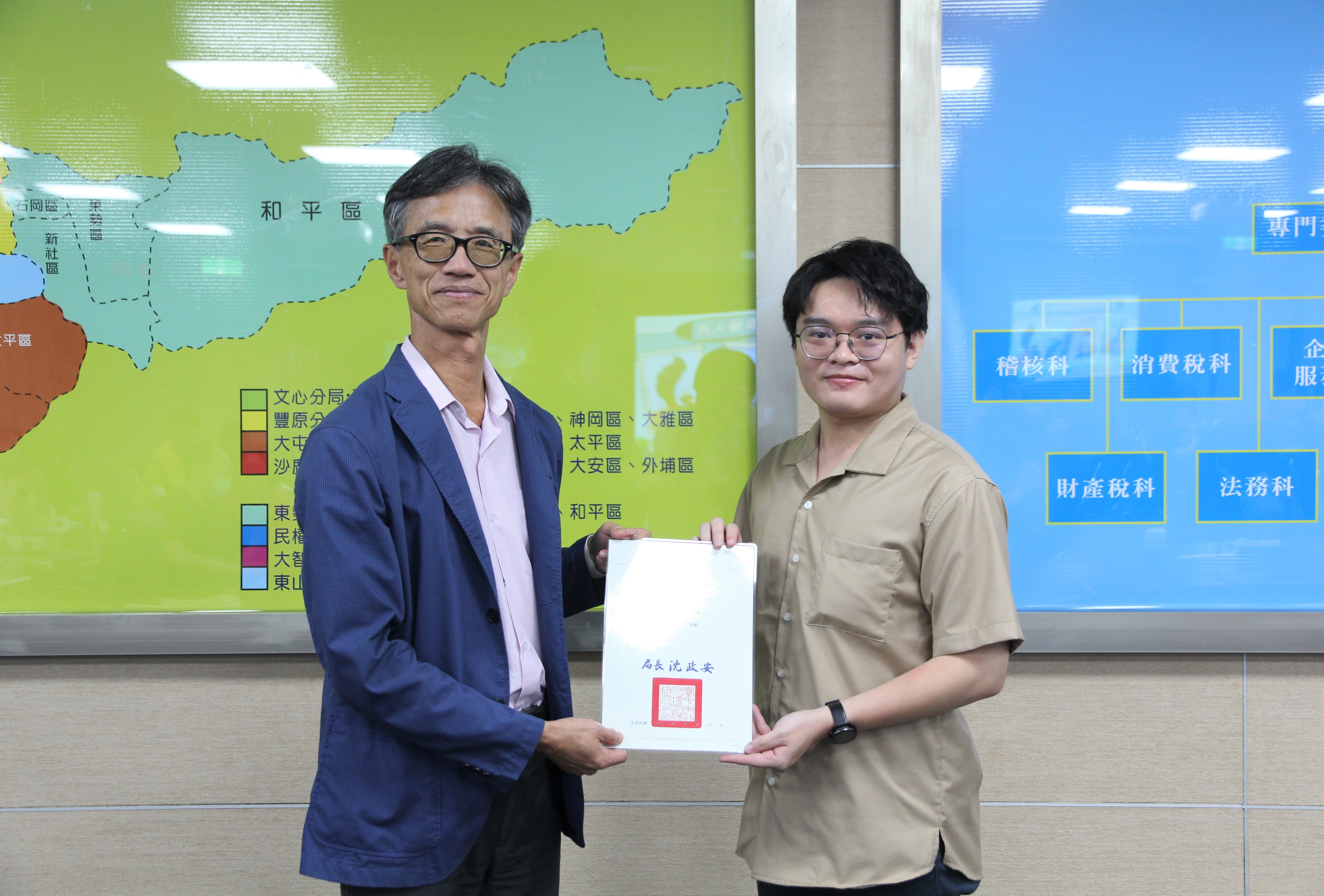 恭喜稅務員陳宥勝先生榮獲113年廉潔楷模績優人員第三名
